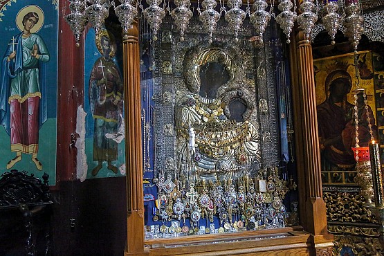 Đức Nữ Vương Thiên Đàng đã ban chiến thắng cho các trận chiến của các Hoàng đế Byzantine, vì thế trong các chiến dịch họ có phong tục luôn cầm theo biểu tượng của Bà, Hodigitria (Người Chỉ Đường). Bà đã củng cố những người khổ hạnh và những người nhiệt thành với đời sống Kitô giáo trong cuộc chiến chống lại những đam mê và điểm yếu của con người. Bà soi sáng và chỉ dẫn các Giáo Phụ và Bậc Thầy của Giáo Hội, bao gồm cả Thánh Cyril thành Alexandria khi ông đang do dự thừa nhận sự vô tội và thánh khiết của Thánh Gioan Chrysostom.